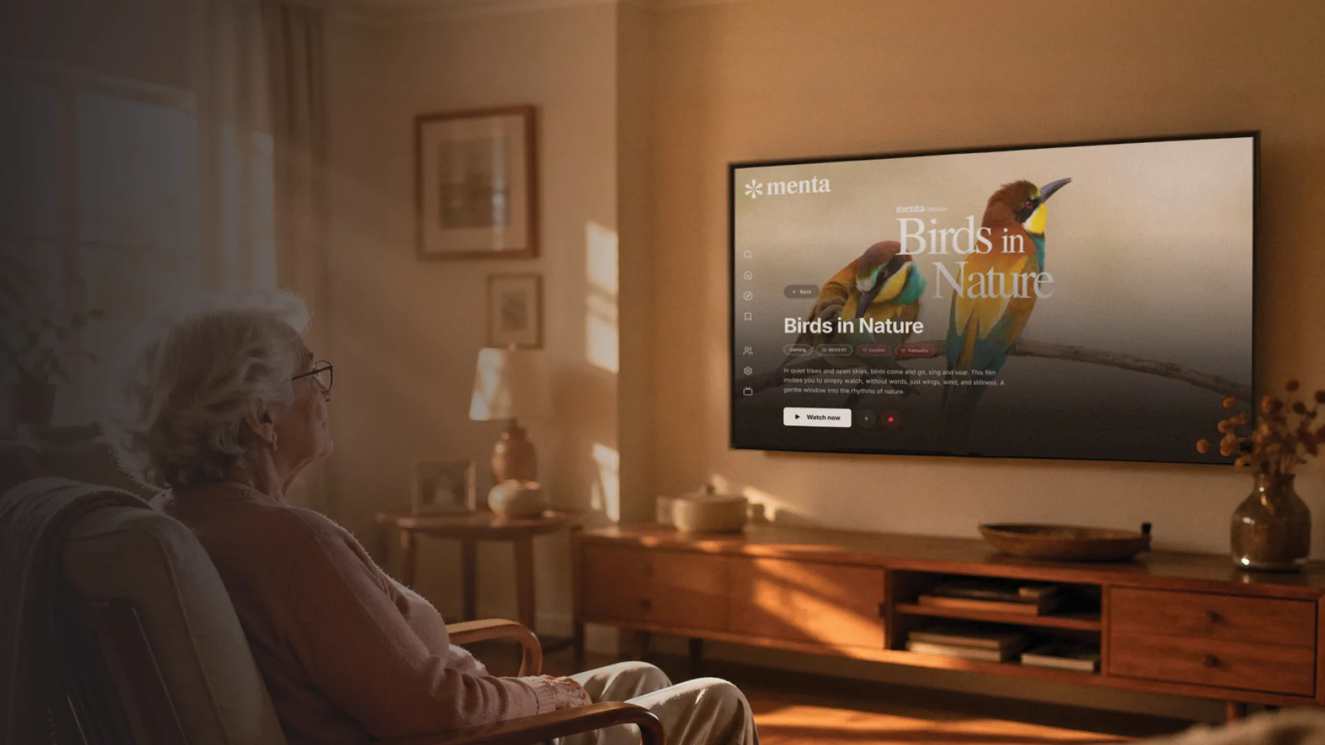 Every video on Menta is reviewed by dementia specialists. No sudden noises, no confusing cuts, no distressing scenes. Just content that genuinely settles.